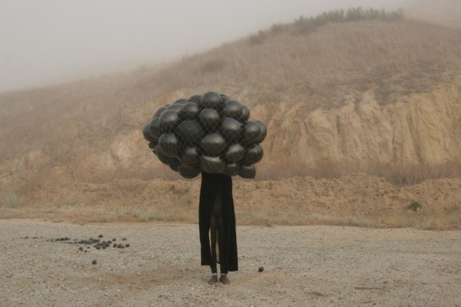 IBD (Improvised Balloon Device) was created at the height of the Iraq war "surge" in 2007. In the video, photographs and installation the artist becomes a living oil well, bubbling in mourning and anger.